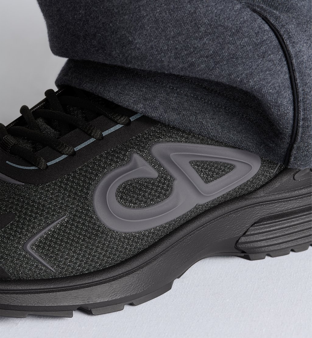 New for Spring 2026, the B30 Countdown Tech sneaker is distinguished by its sporty silhouette combining couture codes with technical performance. Directly inspired by the modern running world, the ultralightweight sneaker is crafted in black N3O nylon, a multilayer semi-transparent and ultra-breathable technical fabric. It is enhanced by gray injected rubber inserts, as well as a revisited CD30 signature in a graphic style. It also features rubber Dior B30 and CD30 signatures on the tongue and back. A sculpted sole in a blend of flexible rubber and foam ensures optimal comfort and is embellished with various hallmark details. The B30 Countdown Tech sneaker will complete both sportswear and casual outfits.